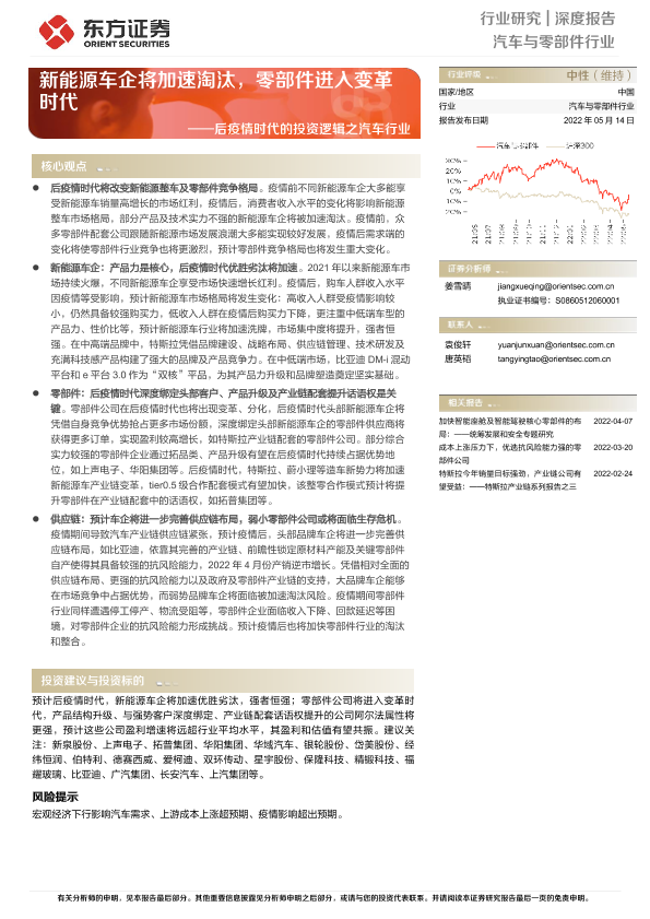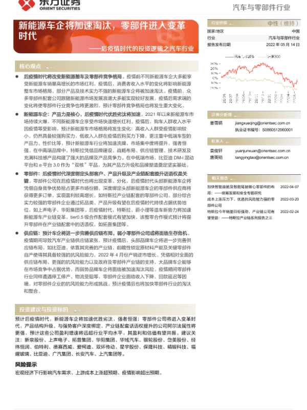 【东方证券】【20220514】汽车与零部件行业后疫情时代的投资逻辑之汽车行业:新能源车企将加速淘汰,零部件进入变革时代-32页