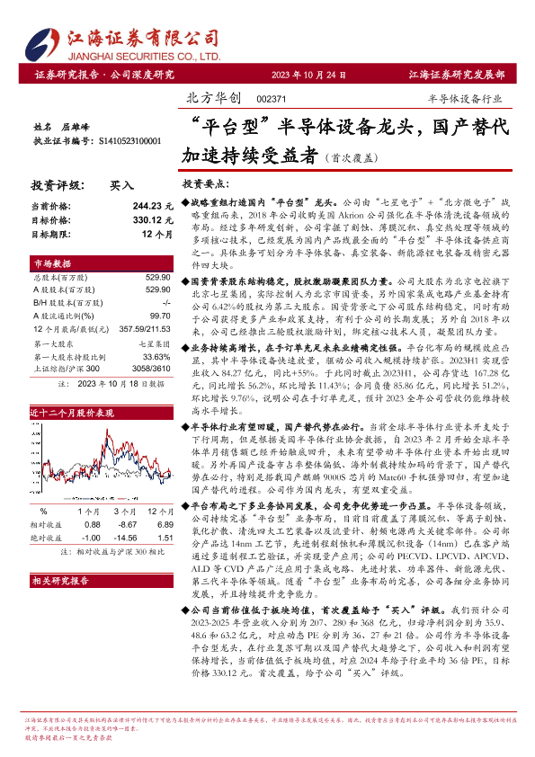 【江海证券】【20231024】“平台型”半导体设备龙头,国产替代加速持续受益者-25页