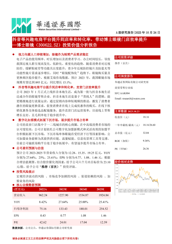 【华通证券国际】【20231024】抖音等兴趣电商平台提升到店率和转化率,带动博士眼镜门店效率提升-23页