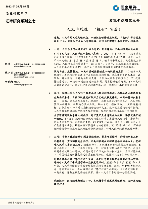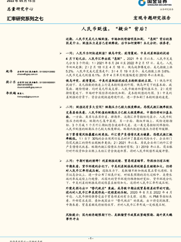 【国金证券】【20220515】汇率研究系列之七:人民币贬值,“疑云”背后?-18页