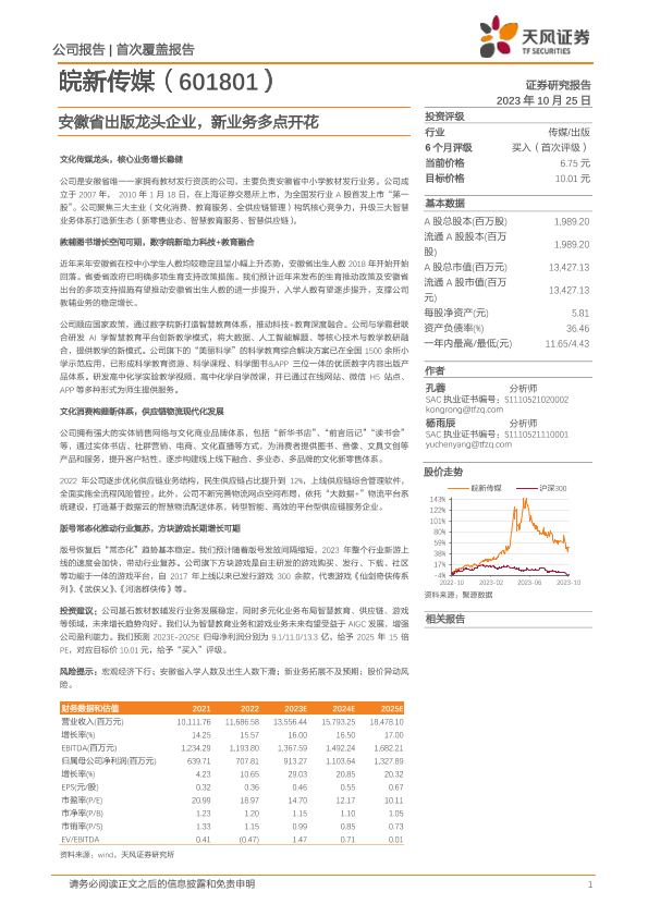【天风证券】【20231025】20231025-天风证券-皖新传媒-601801.SH-安徽省出版龙头企业,新业务多点开花-20页