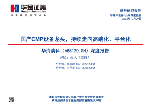 【华金证券】【20231029】华海清科(688120.SH)深度报告:国产CMP设备龙头,持续走向高端化、平台化-54页