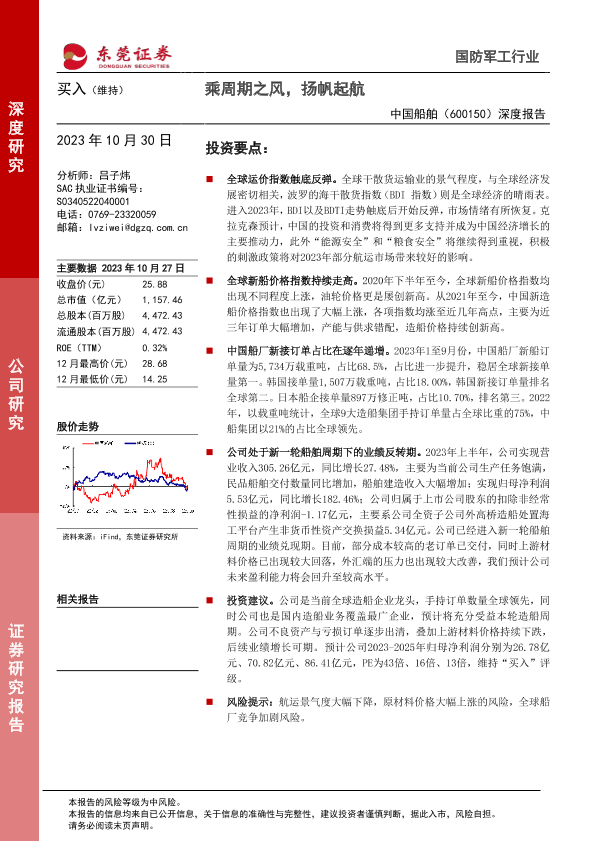 【东莞证券】【20231030】20231030-东莞证券-中国船舶-600150.SH-深度报告:乘周期之风,扬帆起航-21页