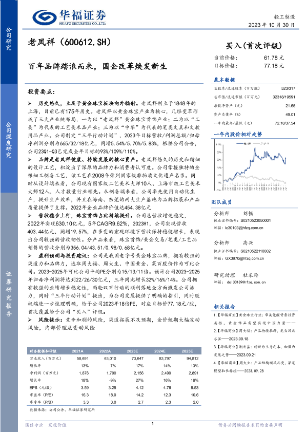 【华福证券】【20231030】老凤祥-600612.SH-百年品牌踏浪而来,国企改革焕发新生-13页