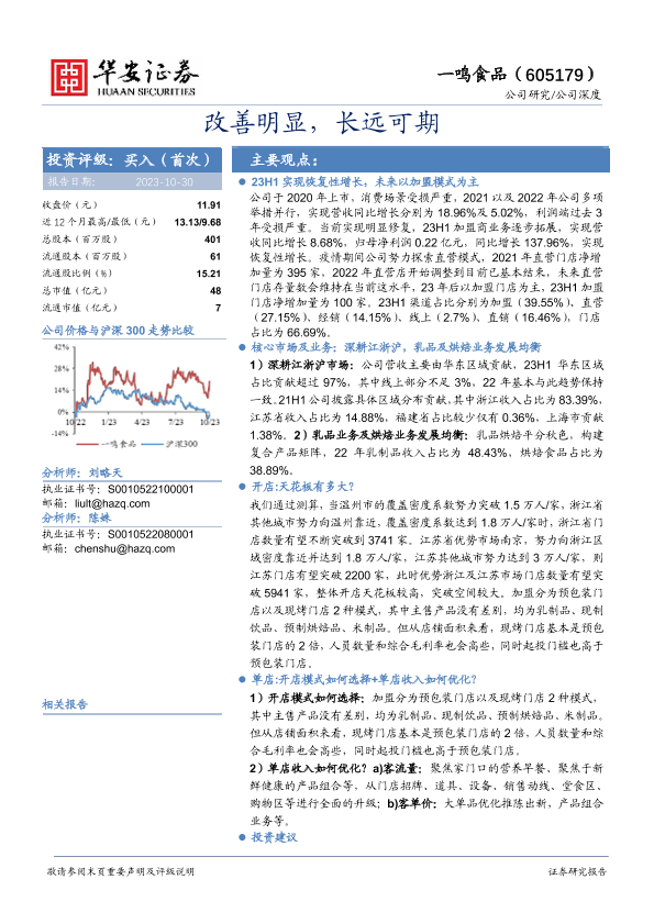 【华安证券】【20231030】20231030-华安证券-一鸣食品-605179.SH-改善明显,长远可期-27页