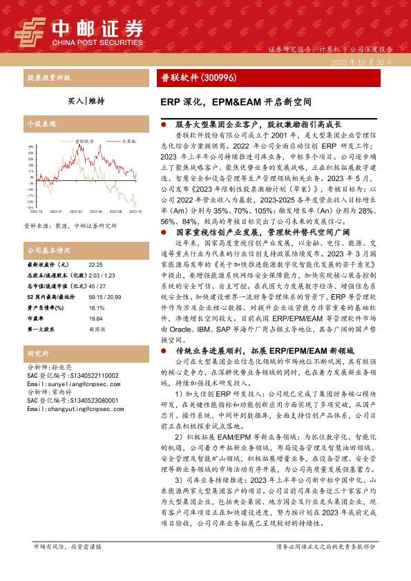 【中邮证券】【20231030】20231030-中邮证券-普联软件-300996.SZ-ERP深化,EPM&EAM开启新空间-24页