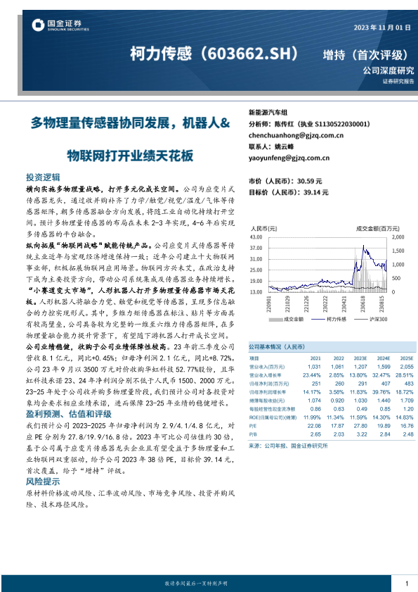 【国金证券】【20231101】多物理量传感器协同发展,机器人&物联网打开业绩天花板-31页
