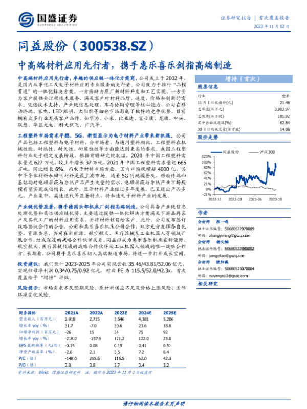 【国盛证券】【20231102】同益股份:中高端材料应用先行者,携手惠乐喜乐剑指高端制造-18页