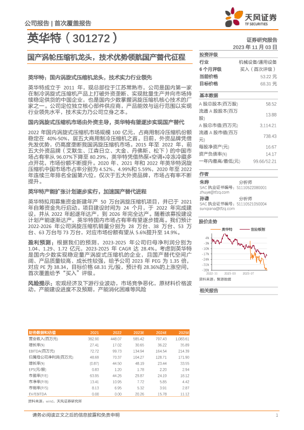 【天风证券】【20231103】英华特-301272.SZ-国产涡轮压缩机龙头,技术优势领航国产替代征程-23页