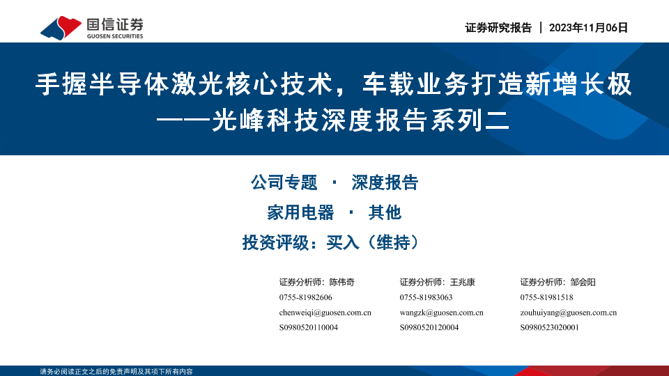 【国信证券】【20231106】光峰科技深度报告系列二:握半导体激光核心技术,车载业务打造新增长极-52页