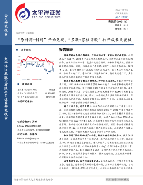 【太平洋证券】【20231106】“原料药+制剂”开始兑现,“多肽+寡核苷酸”打开成长天花板-51页