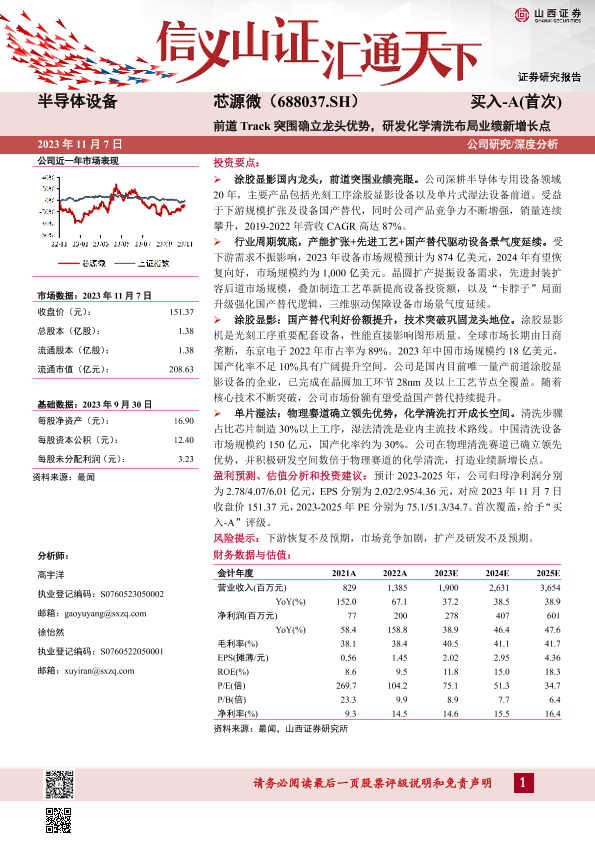 【山西证券】【20231107】前道Track突围确立龙头优势,研发化学清洗布局业绩新增长点-40页
