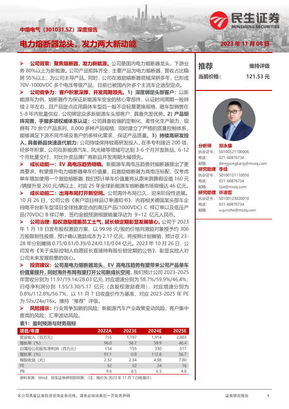 【民生证券】【20231108】20231108-民生证券-中熔电气-301031.SZ-深度报告:电力熔断器龙头,发力两大新动能-34页