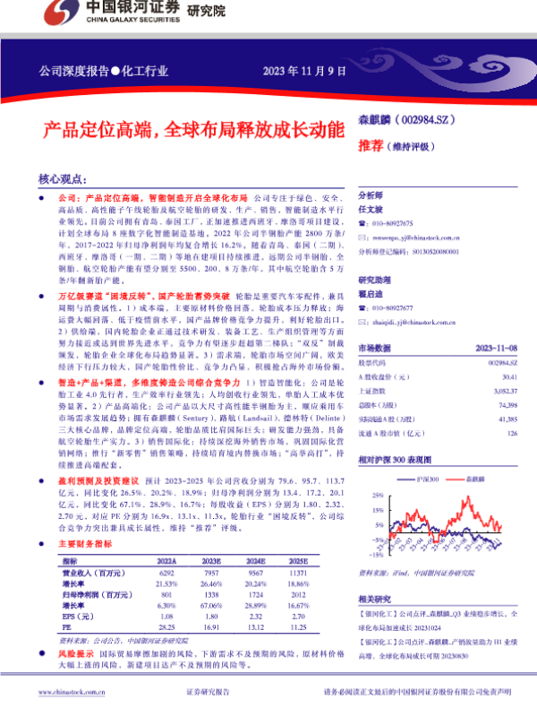 全球化布局 智能制造 财务预测 轮胎行业 高端产品