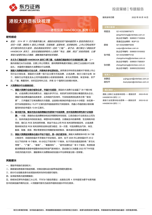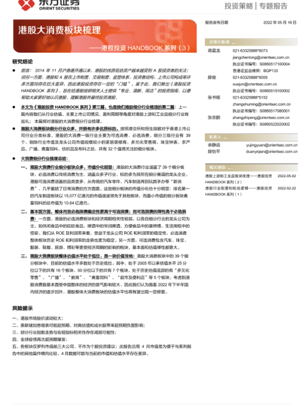 【东方证券】【20220516】港股投资HANDBOOK系列(3):港股大消费板块梳理-64页