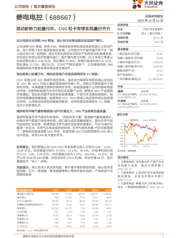 CNG轻卡 国产替代 汽车零部件 混动电控 菱电电控