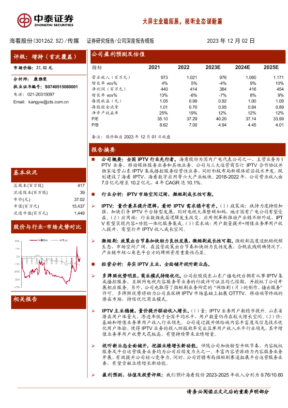 【中泰证券】【20231202】20231202-中泰证券-海看股份-301262.SZ-大屏主业稳拓展,视听业态谋新篇-28页