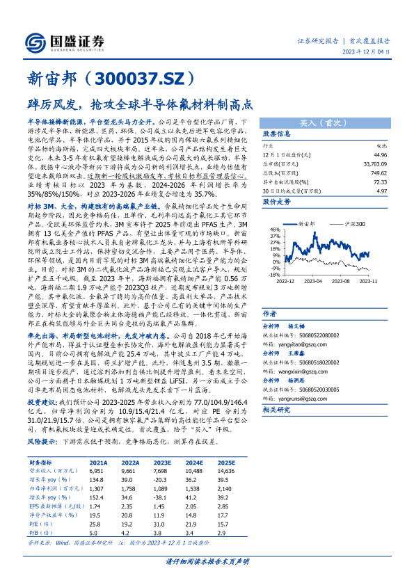 半导体 新宙邦 有机氟 氟材料 高端化学品