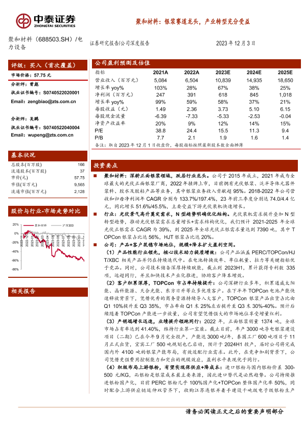 【中泰证券】【20231203】聚合材料:银浆赛道龙头,产业转型充分受益-39页