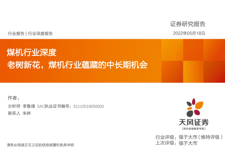 【天风证券】【20220518】煤机行业深度:老树新花,煤机行业蕴藏的中长期机会-39页