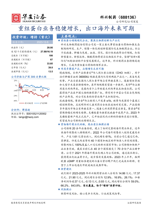 【华安证券】【20231206】重组蛋白业务稳健增长,出口海外未来可期-31页