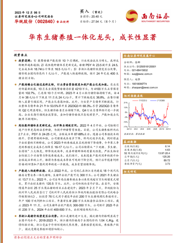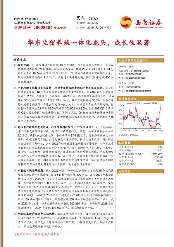 【西南证券】【20231206】20231206-西南证券-华统股份-002840.SZ-华东生猪养殖一体化龙头,成长性显著-20页