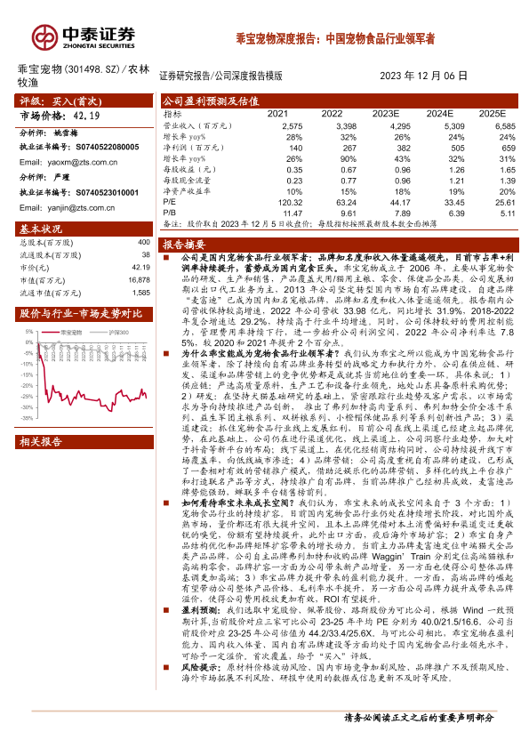 【中泰证券】【20231206】乖宝宠物深度报告:中国宠物食品行业领军者-40页