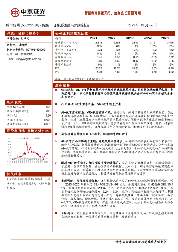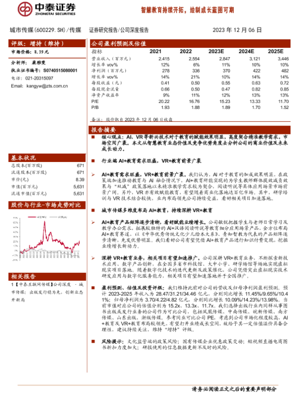 【中泰证券】【20231206】20231206-中泰证券-城市传媒-600229.SH-智慧教育持续开拓,绘制成长蓝图可期-18页