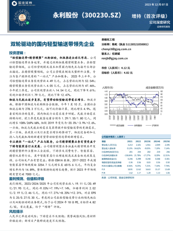【国金证券】【20231207】永利股份-300230.SZ-双轮驱动的国内轻型输送带领先企业-20页