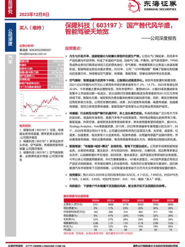 【东海证券】【20231208】保隆科技:国产替代风华盛,智能驾驶天地宽-58页