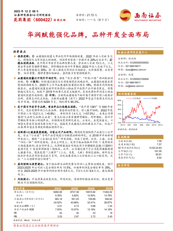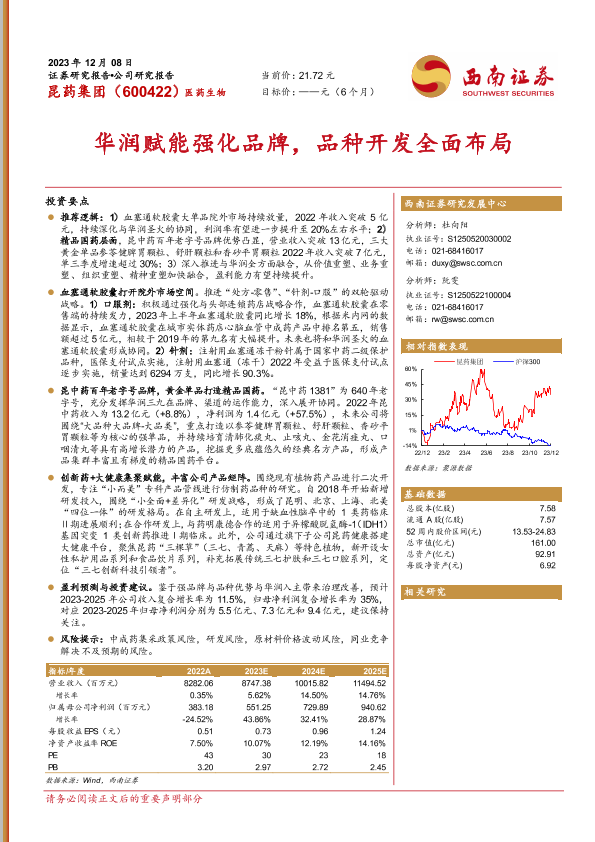 【西南证券】【20231208】昆药集团:华润赋能强化品牌,品种开发全面布局-28页