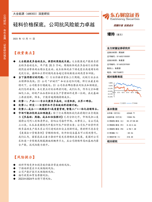【东方财富证券】【20231211】20231211-东方财富证券-大全能源-688303.SH-深度研究:硅料价格探底,公司抗风险能力卓越-23页