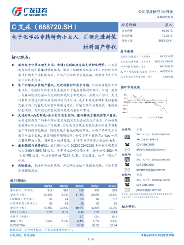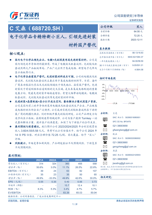【广发证券】【20231211】艾森股份-电子化学品专精特新小巨人,引领先进封装材料国产替代-31页