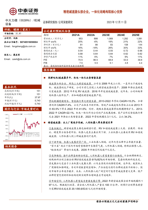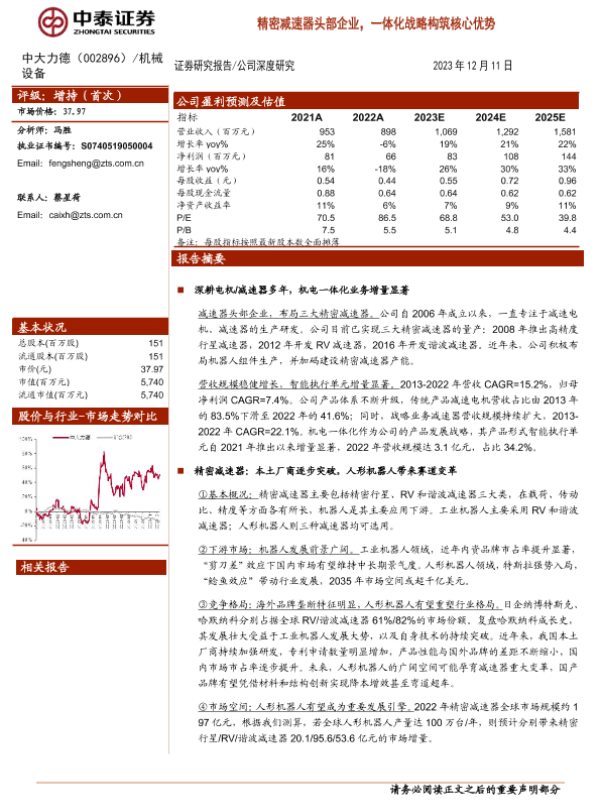 【中泰证券】【20231211】中大力德-002896.SZ-精密减速器头部企业,一体化战略构筑核心优势-31页