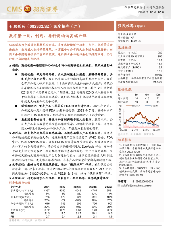 【海通证券】【20231212】20231212-招商证券-仙琚制药-002332.SZ-深度报告(二):数年磨一剑,制剂、原料药均向高端升级-16页
