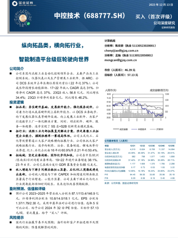 【国金证券】【20231213】国金证券-中控技术-纵向拓品类,横向拓行业,智能制造平台级巨轮驶向世界-29页