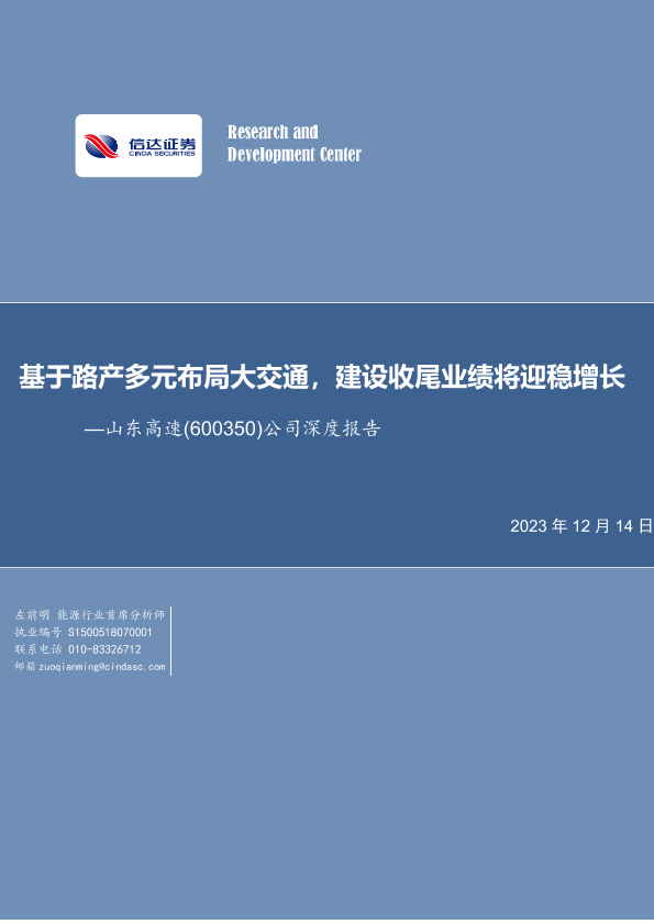 【信达证券】【20231214】基于路产多元布局大交通,建设收尾业绩将迎稳增长-32页