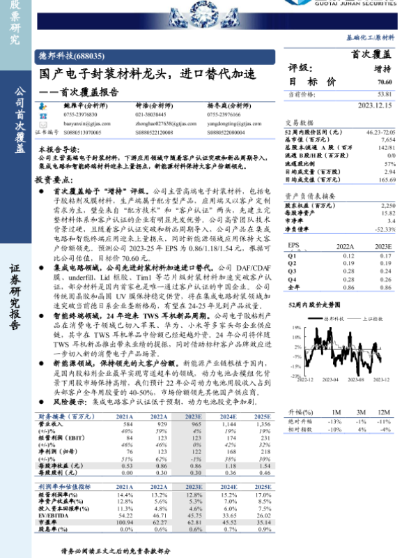 【国泰君安证券】【20231215】20231215-国泰君安-德邦科技-688035.SH-首次覆盖报告:国产电子封装材料龙头,进口替代加速-21页