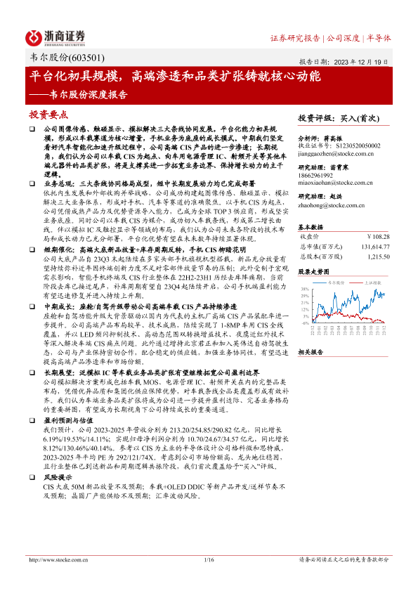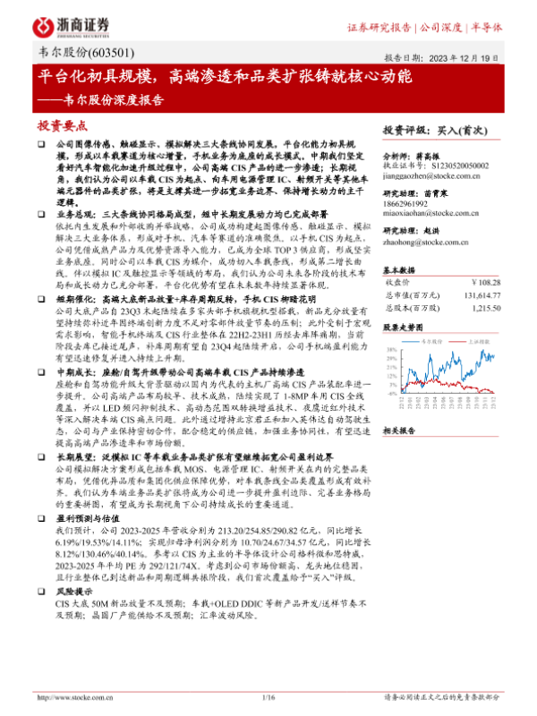 【浙商证券】【20231219】韦尔股份深度报告:平台化初具规模,高端渗透和品类扩张铸就核心动能-16页