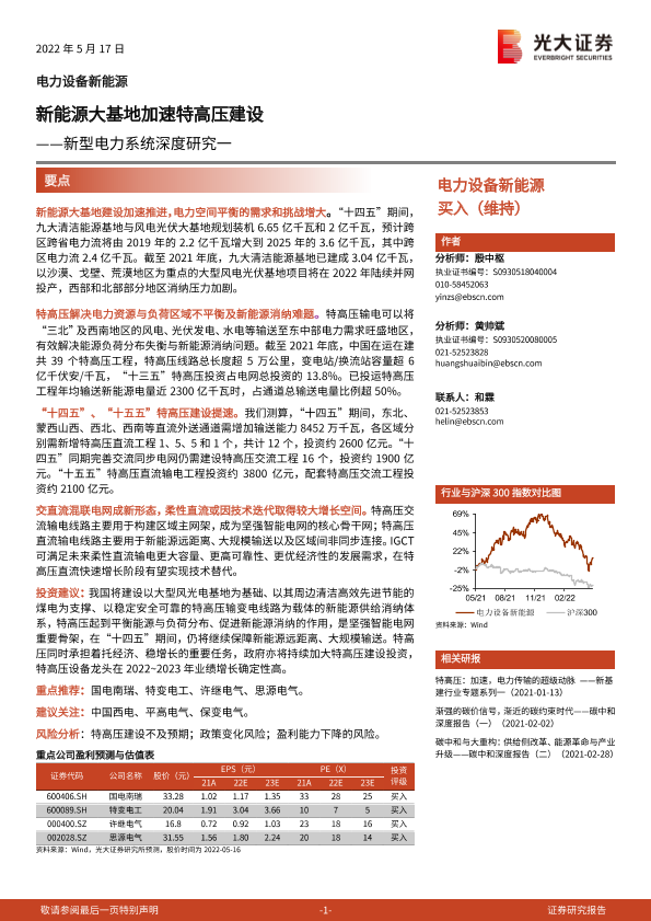 【光大证券】【20220517】电力设备新能源行业新型电力系统深度研究一:新能源大基地加速特高压建设-40页