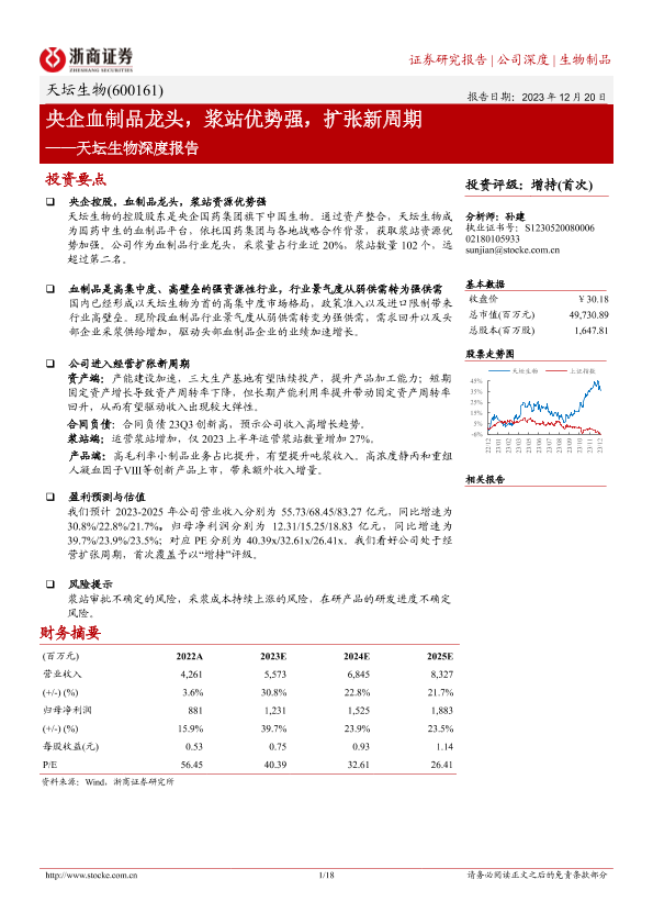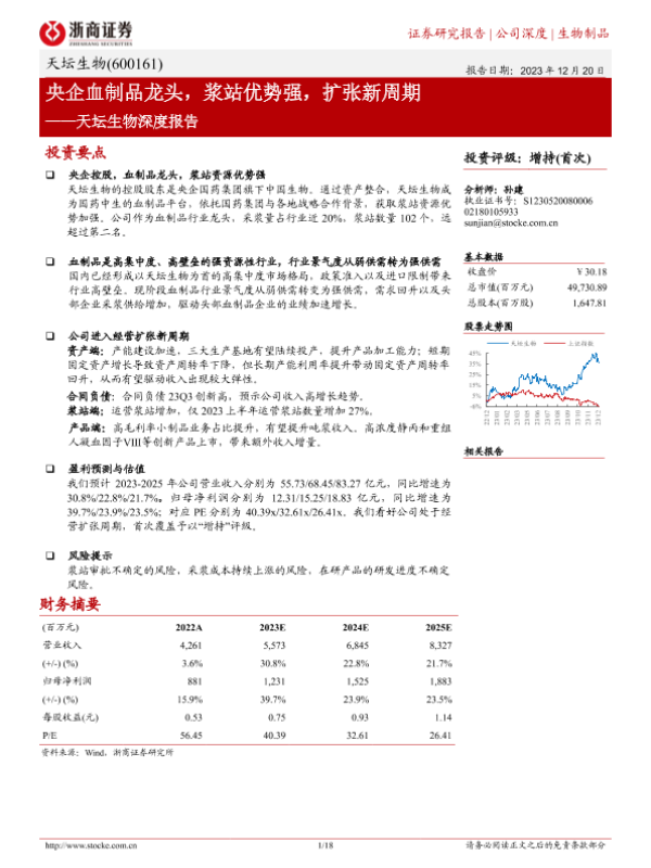【浙商证券】【20231220】天坛生物深度报告:央企血制品龙头,浆站优势强,扩张新周期-18页