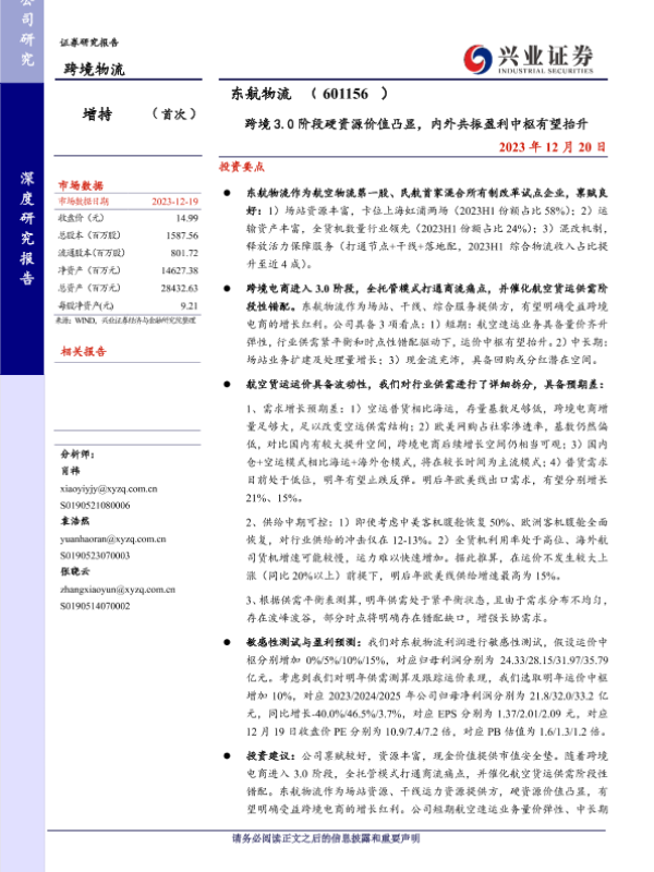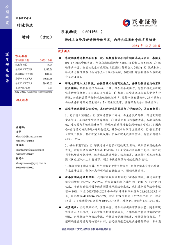 投资建议 航空物流 财务预测 跨境电商 运力分析