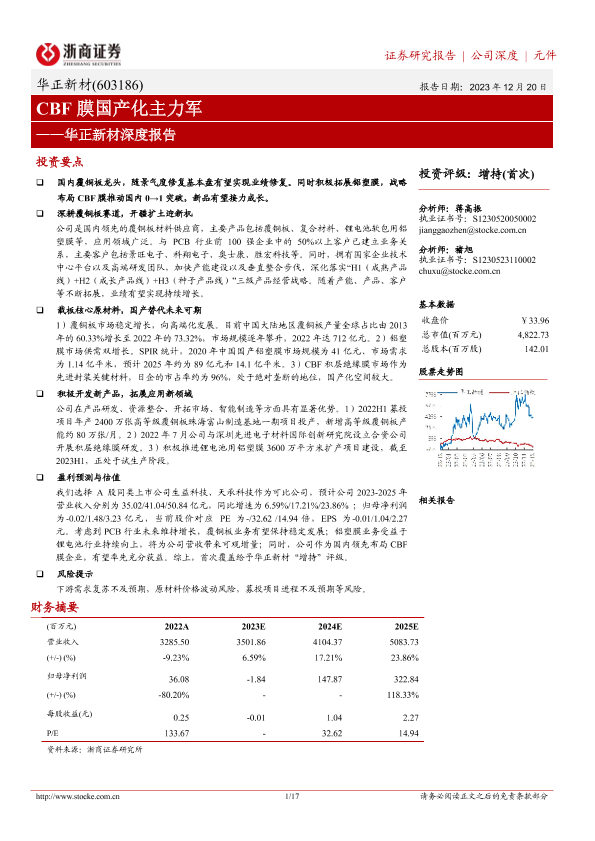 【浙商证券】【20231220】华正新材深度报告:CBF膜国产化主力军-17页