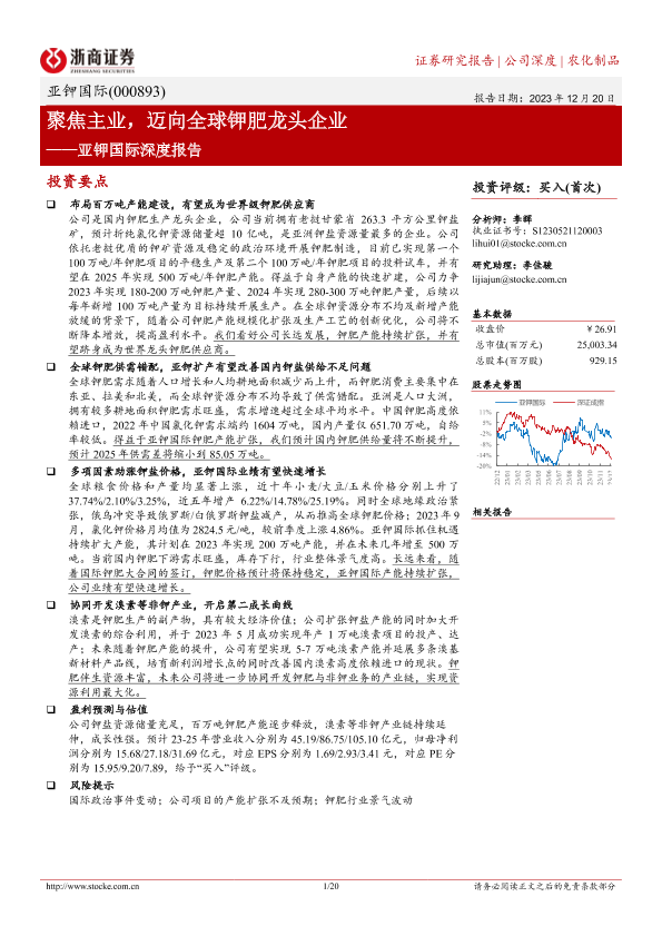 【浙商证券】【20231220】亚钾国际深度报告:聚焦主业,迈向全球钾肥龙头企业-20页