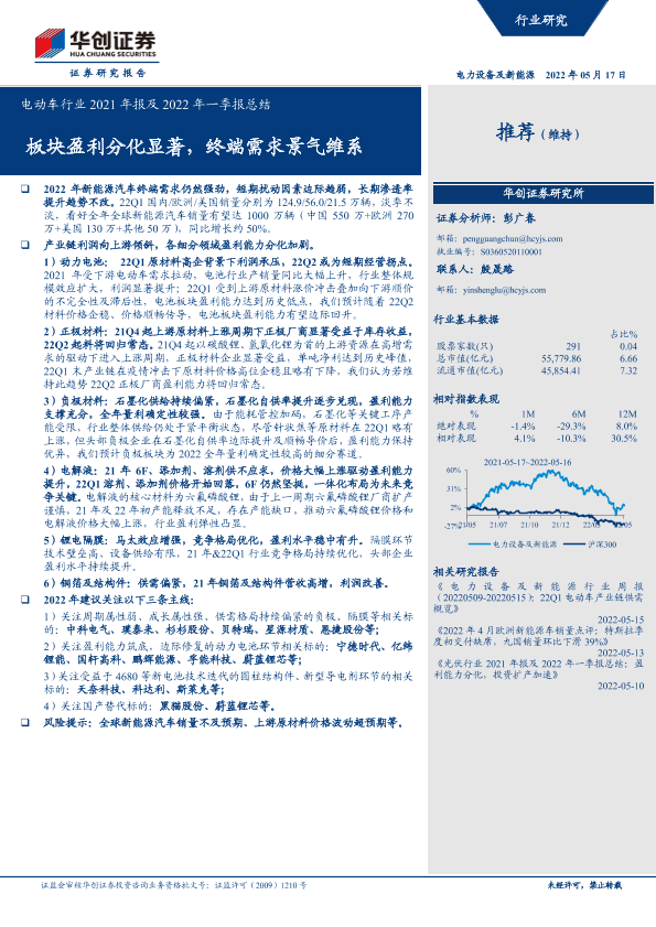 【华创证券】【20220517】电动车行业2021年报及2022年一季报总结-25页