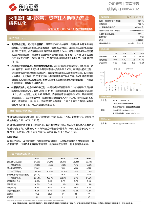 【东方证券】【20231222】20231222-东方证券-皖能电力-000543.SZ-首次覆盖报告:火电盈利能力改善,资产注入助电力产业结构优化-26页