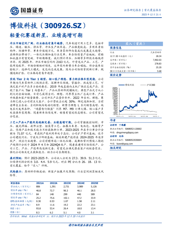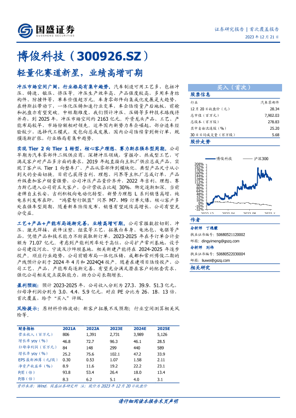【国盛证券】【20231221】博俊科技(300926.SZ):轻量化赛道新星,业绩高增可期-30页