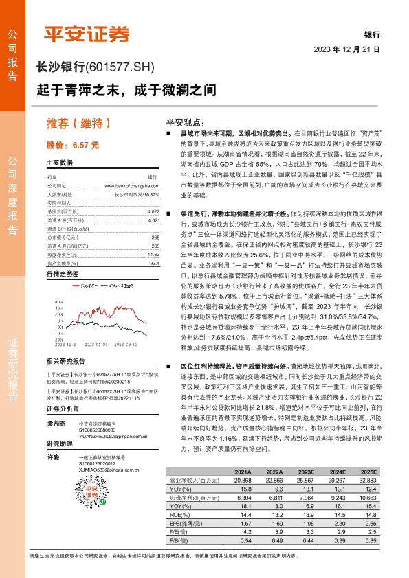 区域优势 县域金融 资产质量 银行业务 长沙银行