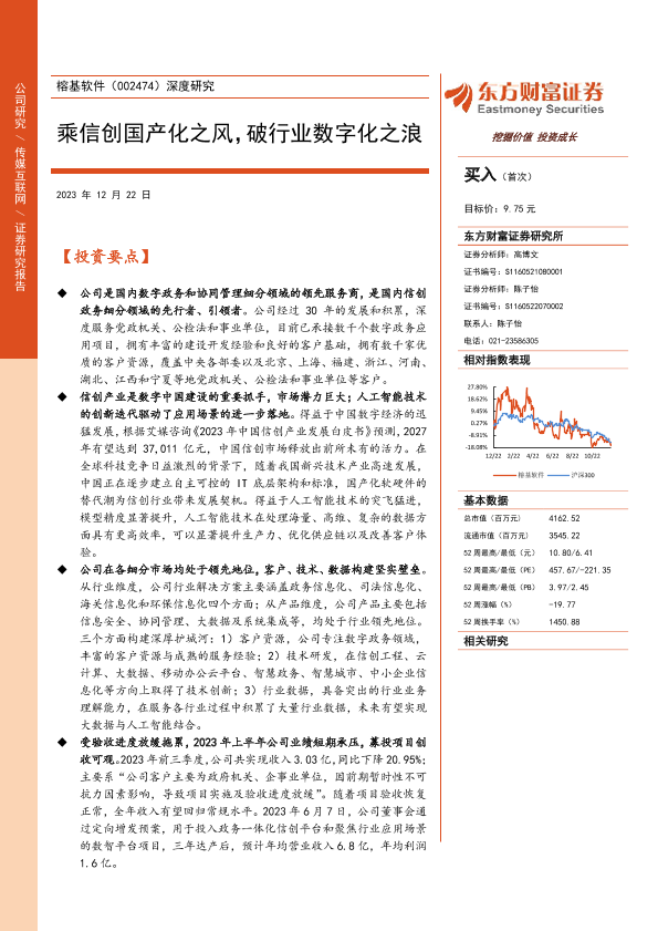 【东方财富证券】【20231222】20231222-东方财富证券-榕基软件-002474.SZ-深度研究:乘信创国产化之风,破行业数字化之浪-30页