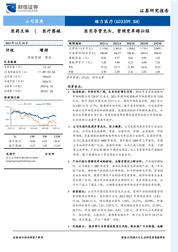 【财信证券】【20231226】20231226-财信证券-维力医疗-603309.SH-医用导管龙头,营销变革踏征程-24页